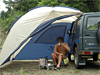 クローズのために目隠しにもなり、春のキャンプでは夕方の涼しさからも身体を守ってくれます。中で調理も出来、いつもはキャンピングベッドを置いて寝ています。しばらくメインとして使用していましたが設置が面倒臭く、コールマンのタープを購入してからは予備になってしまいました。 |